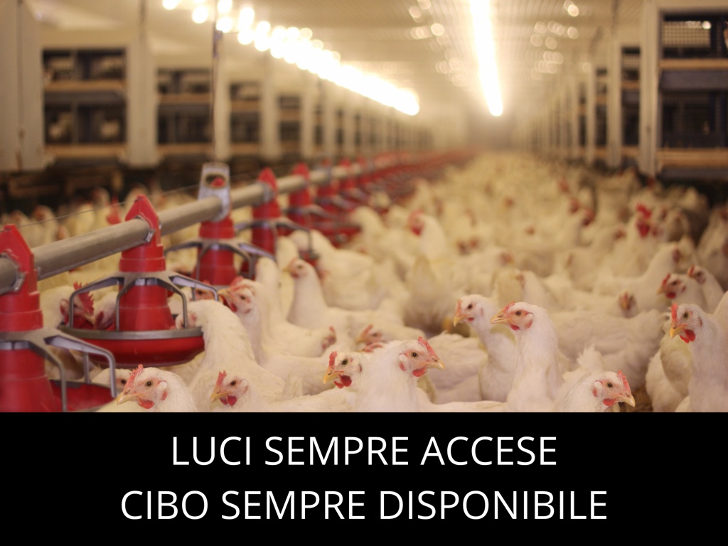 Le tecniche di ingrasso negli allevamenti intensivi sono diverse e a volte simili tra le varie specie allevate, ad esempio nell’allevamento dei polli o tacchini allevati in capannoni sovraffollati non vengono mai spente le luci, e queste povere creature continuano a mangiare e crescere fino a raggiungere il peso ideale per la commercializzazione in brevissimo tempo.