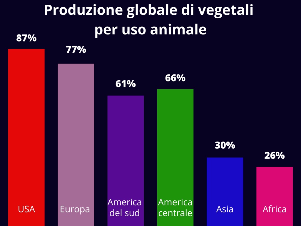I dati più recenti indicano che tre quarti dei terreni agricoli sono destinati agli allevamenti intensivi, utilizzati per allevare gli animali ma anche per produrre gli alimenti per il loro sostentamento.